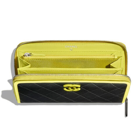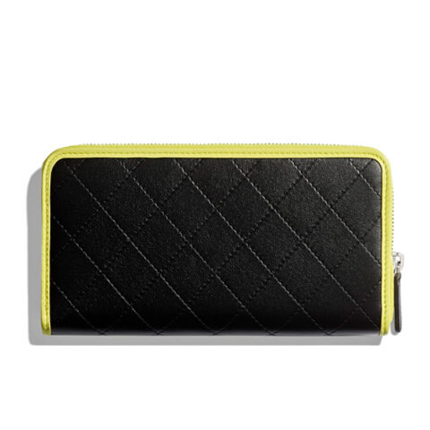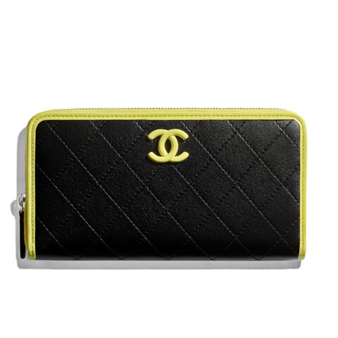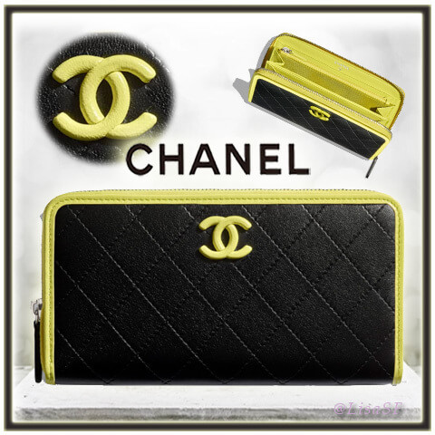 ☆シャネル☆CC シャネル財布偽物 ラム×シルバー ジップウォレット/ブラック系 20052204