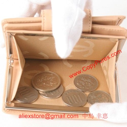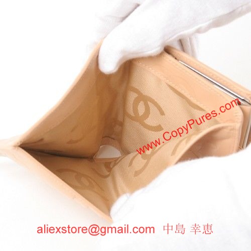 【シャネル】【二つ折財布】【新品】鮮やかなベージュとクールブラックで完成する愛らしいスタイル。外側にデザインされたがま口の小銭入れは実用性にも優れています。表情のあるデザインで差がつくこと間違いなし。お札入れ×1、小銭入れ(がま口)×1、カード入れ×6、ポケット×2が付いています。/商品番号:26720/カラー:ベージュ、ブラック/素材:カーフレザー/ 【縦】×【横】×【厚さ】/ 約10cm×10.5cm×3cm