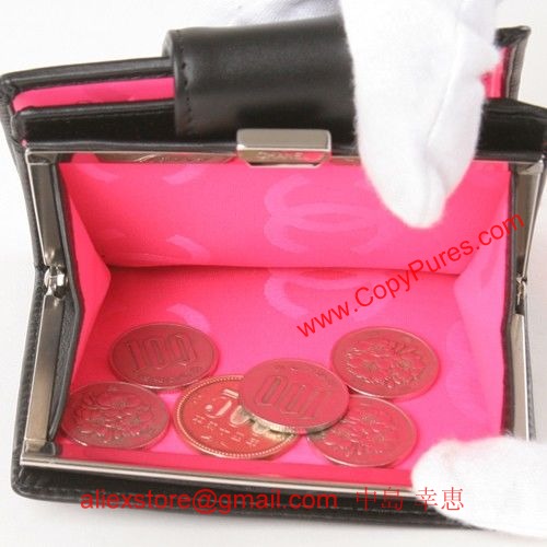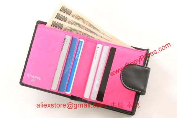 【シャネル】【二つ折財布】【新品】大きく配されたホワイトのココマークでセンスアップを目指して。さりげなくチラッと見えるショッキングピンクがフェミニンな印象を与えます。外側にデザインされた小銭入れは実用性に優れ、便利。お札入れ×1、小銭入れ(がま口)×1、カード入れ×6、ポケット×2が付いています/商品番号:26720/カラー:ブラック、ホワイト/素材:カーフレザー/ 【縦】×【横】×【厚さ】/ 約10cm×10.5cm×3cm