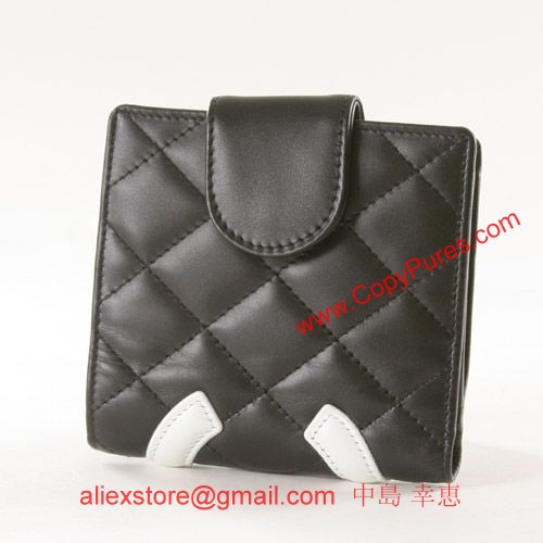 シャネル カンボンライン 二つ折財布 ブラック&ホワイト A26720