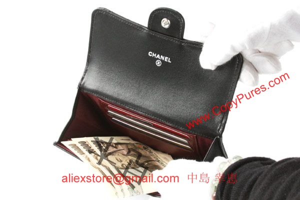 シャネル マトラッセライン ラムスキン 二つ折財布 ブラック A31505