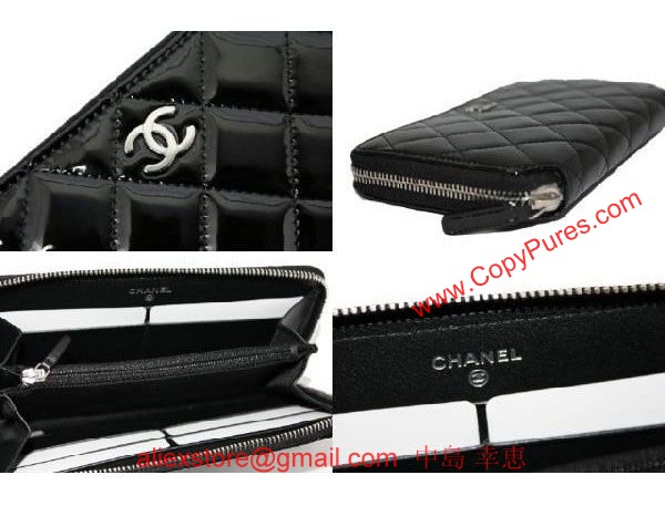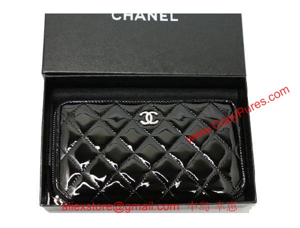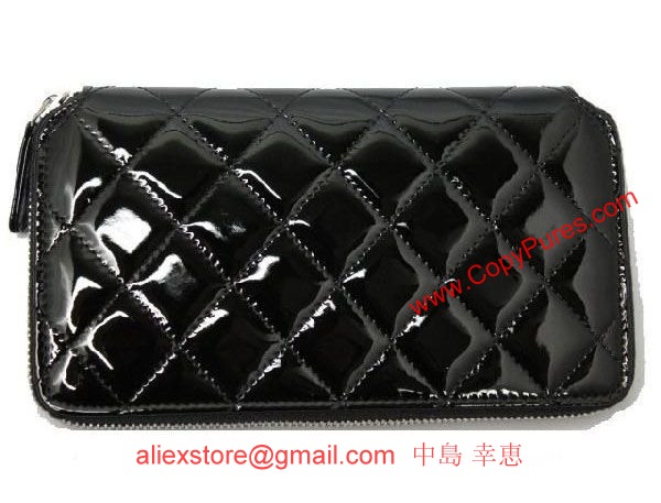 【シャネル】【長財布】 A33809 エナメル タイムレスクラシック ジップウオレット 黒 ラウンドファスナー長財布