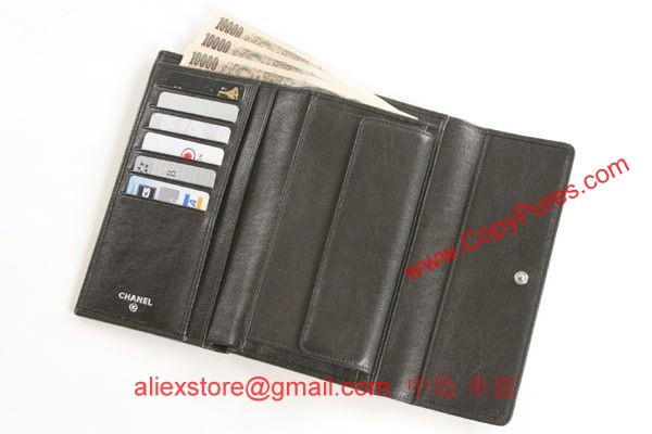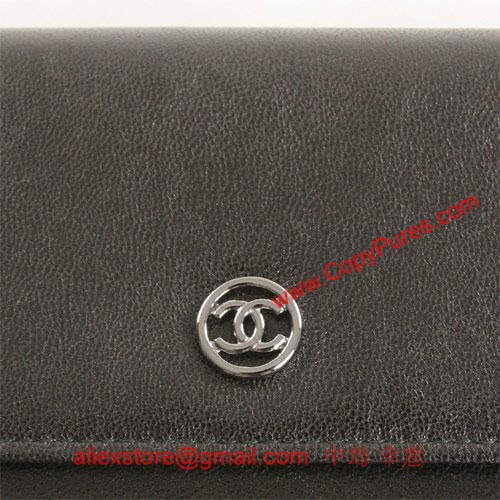 【シャネル】【長財布】【新品】ブラックに限りなく近いチャコールグレーのシックなウォレット。シンプルだからこそ引き立つ上質素材は万人が欲しがる優秀アイテムです。中央にさりげなく配されたシャネルロゴが大人リッチを印象付ける。財布にはお札入れ×1、小銭入れ(ボタン式)×1、カード入れ×6、ポケット×4が付いています。/商品番号:33922/カラー:チャコールグレー(GRIS FONCE)/素材:カーフレザー/ 【縦】×【横】×【厚さ】/ 約10.5cm×18cm×2cm