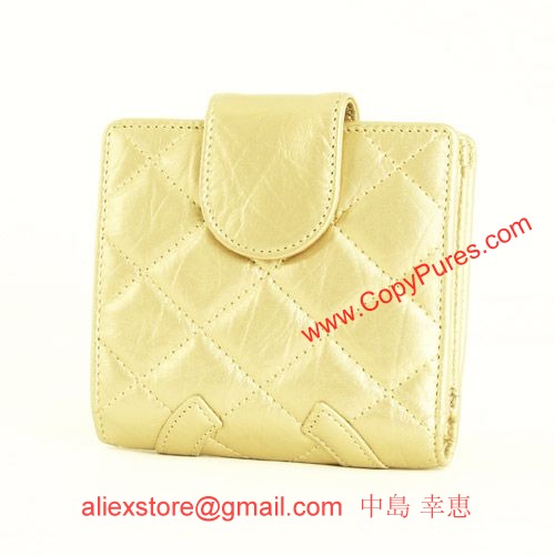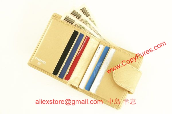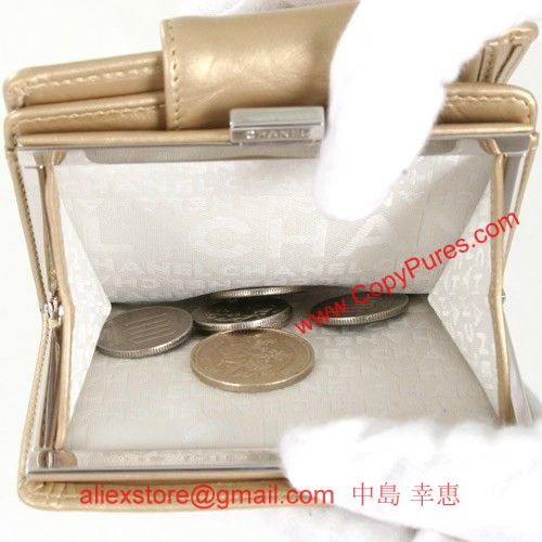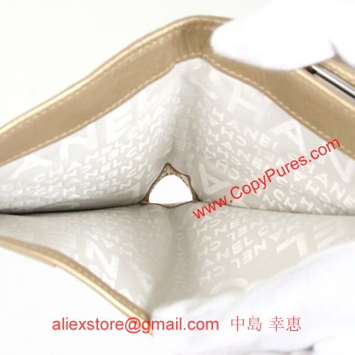 シャネル カンボンライン アンティークレザー 二つ折財布 ゴールド A34710