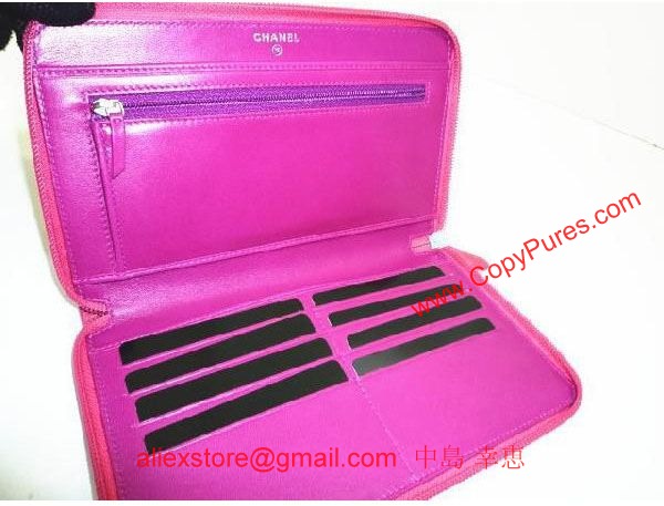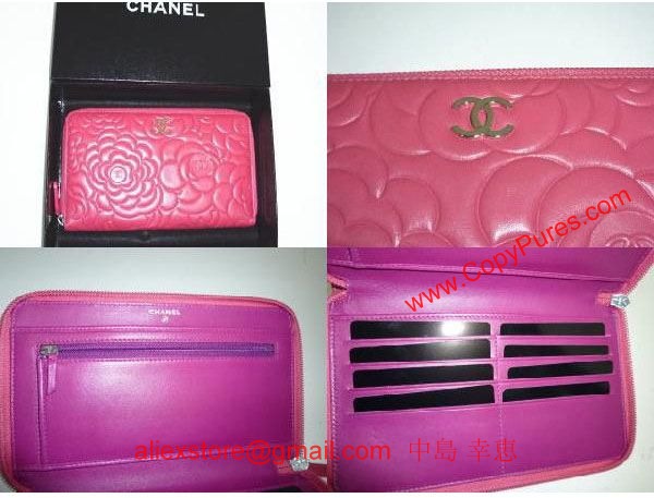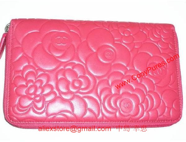 【シャネル】【長財布】 A36543カメリアエンボス革 ジップウオレット ピンク/パープル