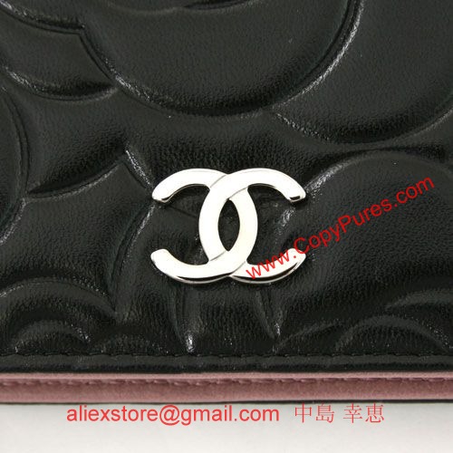 【シャネル】【長財布】シャネル カメリア ラムスキン 長財布 ブラック A36544