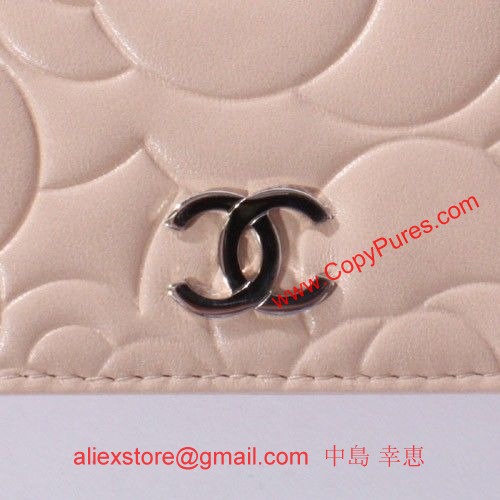 【シャネル】【長財布】【新品】シャネルが最も愛したといわれる花が『カメリア(椿)』。ラムスキン全体に型押しされたカメリアが魅力的な一品。シャネルの象徴でもあるココマークが最大のアクセントとなります。お札入れ×1、小銭入れ(ファスナー)×1、カード入れ×8、ポケット×4付き。/商品番号:A36544/カラー:ベージュ/素材:ラムスキン/ 【縦】×【横】×【厚さ】/ 約10cm×18cm×2.5cm