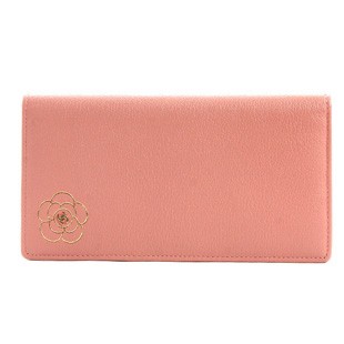 シャネルが最も愛したといわれる花が『カメリア(椿)』。隅に配され、控えめながらにも存在感を放ちます。カメリアの中央にはココマークのロゴを配置。お札入れ×1、小銭入れ(ファ