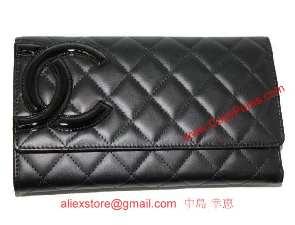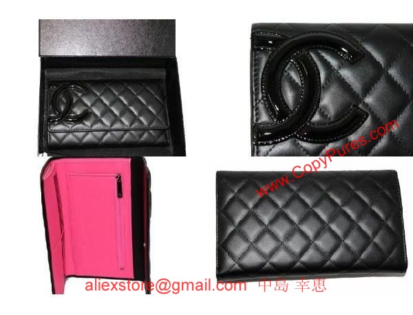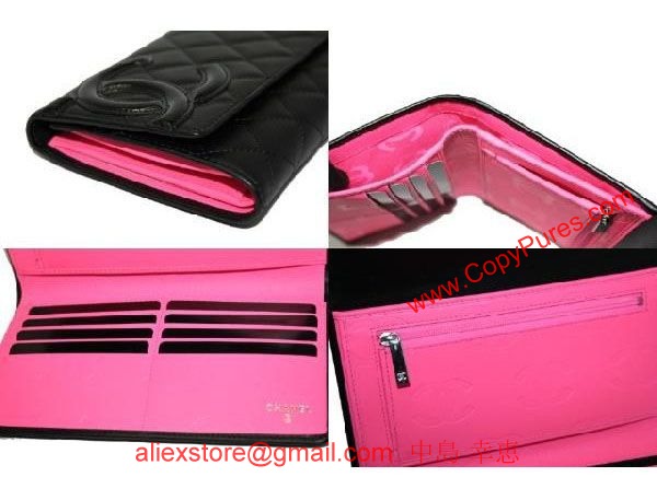 【シャネル】【長財布】 A46654 カンボンライン 三つ折りロングウオレット 黒×黒/ピンク