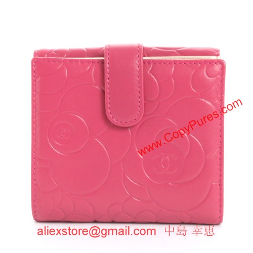 シャネル CHANEL カメリア ラムスキン 二つ折財布 フューシャピンク ゴールド A47422 【2012年春夏新作】
