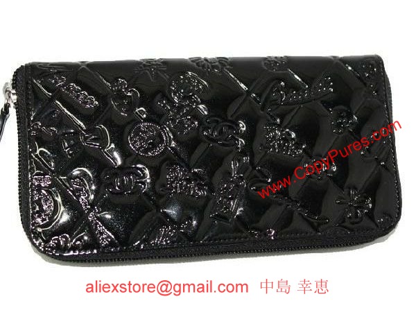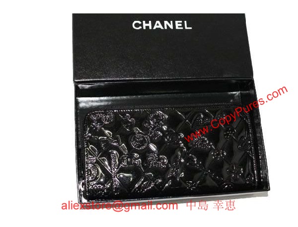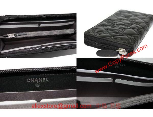 【シャネル】【長財布】 A48051 パテントカーフスキン シンボルチャーム ジップウオレット小 黒/グレー エナメル革長財布