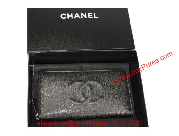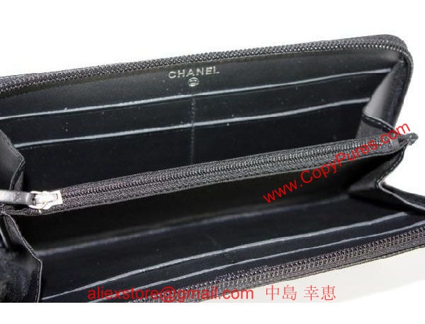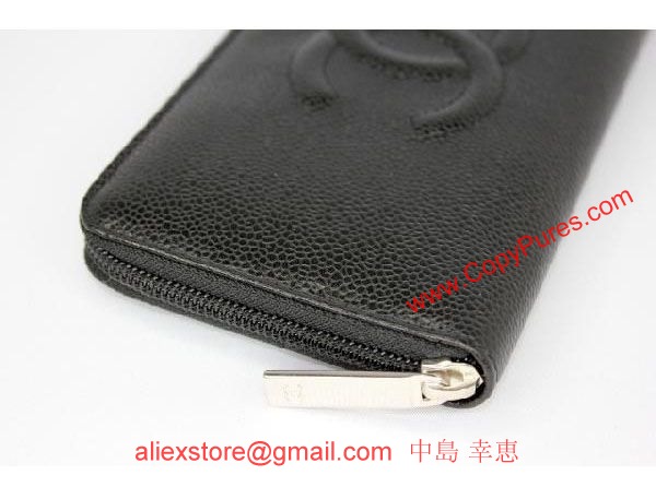【シャネル】【長財布】 A48657 CCマーク付きキャビアスキン ジップウオレット 黒/シルバー ラウンドファスナー財布
