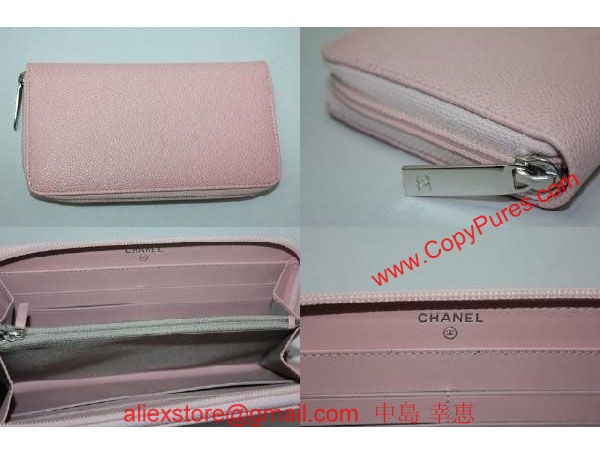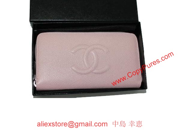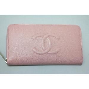 シャネル A50071 CCマーク付きキャビアスキン ジップウオレット ピンク/シルバー金具 ラウンドファスナー財布