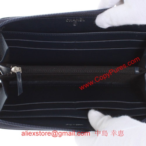 シャネル CHANEL キャビアスキン 長財布 ネイビー A50071 【2012年新作】