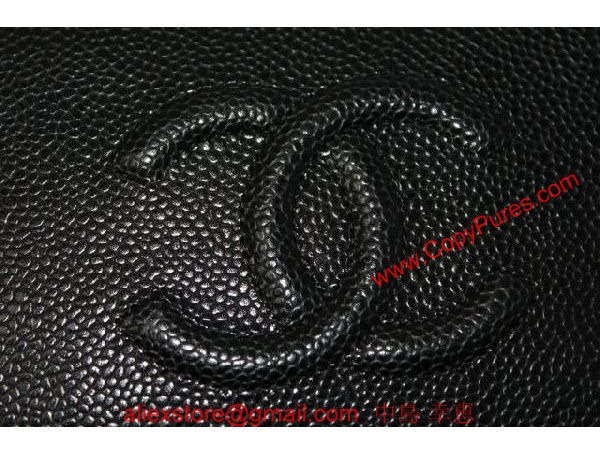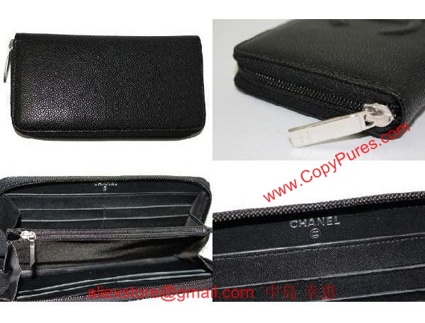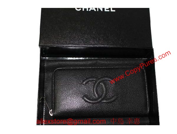 シャネル A50071 CCマーク付きキャビアスキン ジップウオレット 黒/シルバー金具 ラウンドファスナー財布