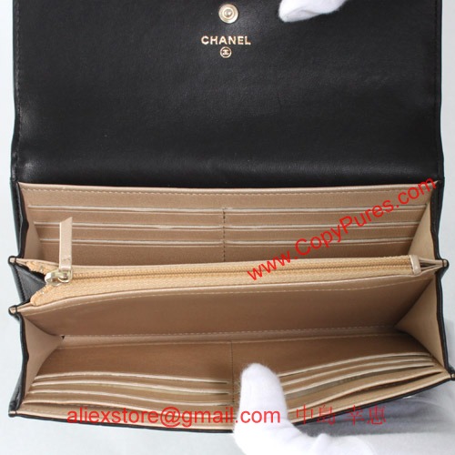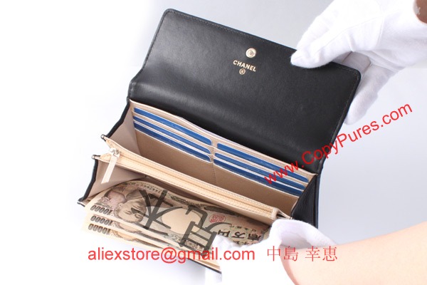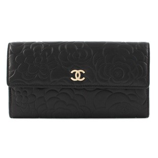 シャネル CHANEL カメリア ラムスキン 長財布 ブラック ゴールド A50084 【2012年春夏新作】