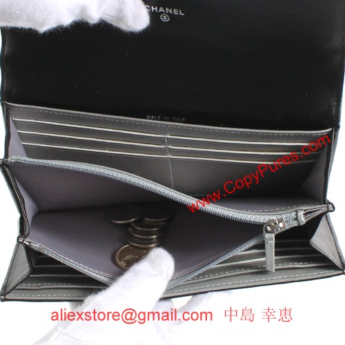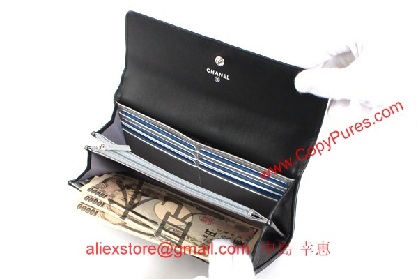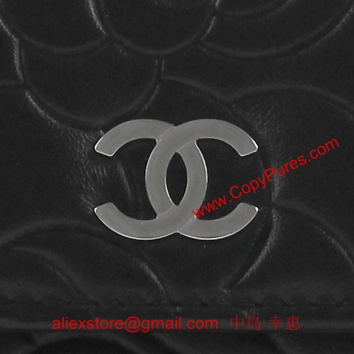 シャネル CHANEL カメリア ラムスキン 長財布 ブラック シルバー A50084