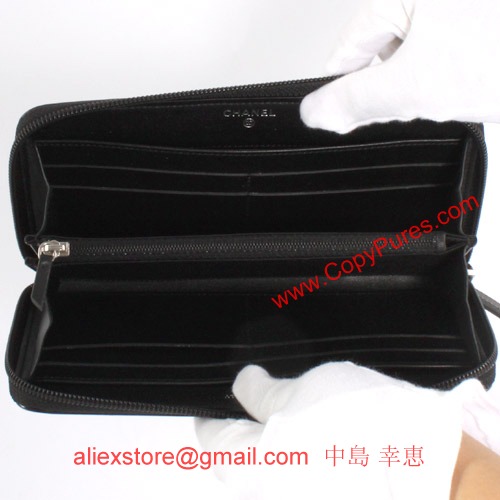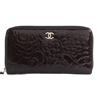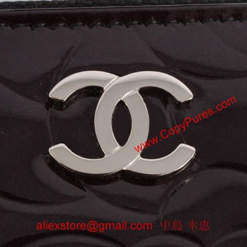 シャネル CHANEL カメリア エナエル 長財布 ブラック シルバー A50085 【2012年春夏新作】