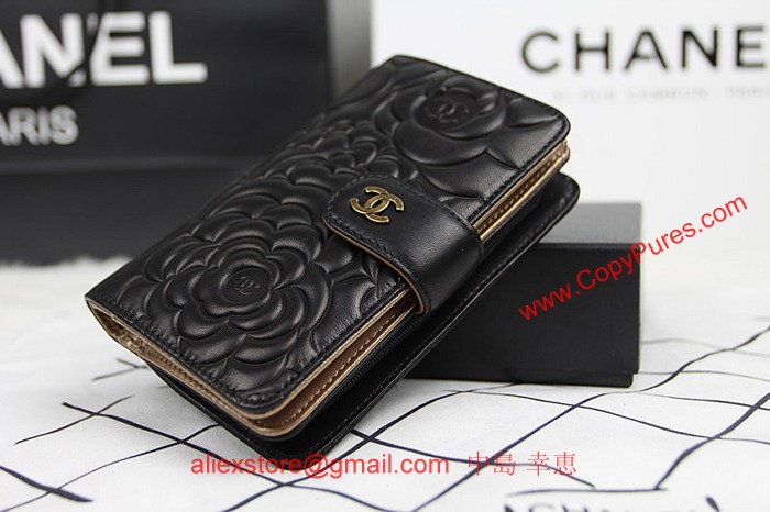 シャネル CHANEL 財布 サイフ さいふ 2014 新作 二つ折り財布 CHANEL 財布 カメリア ブラック A50087-2