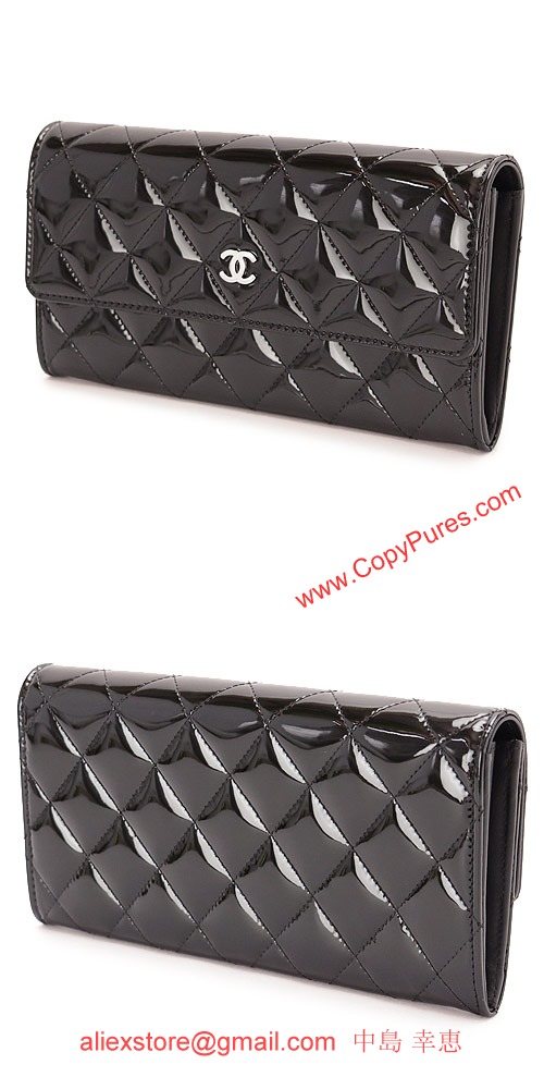 シャネル 長財布 CHANEL シャネル 財布 二つ折りフラップ マトラッセ/キルティング パテントレザー A50096-2