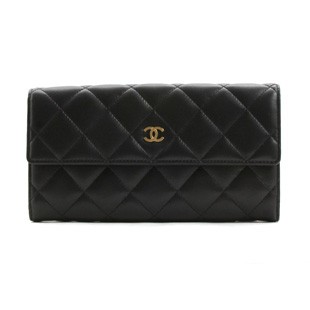 シャネル CHANEL マトラッセライン ラムスキン 長財布 ブラック&ゴールド A50096 【2013年新作】