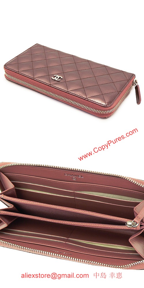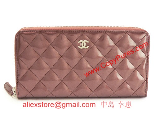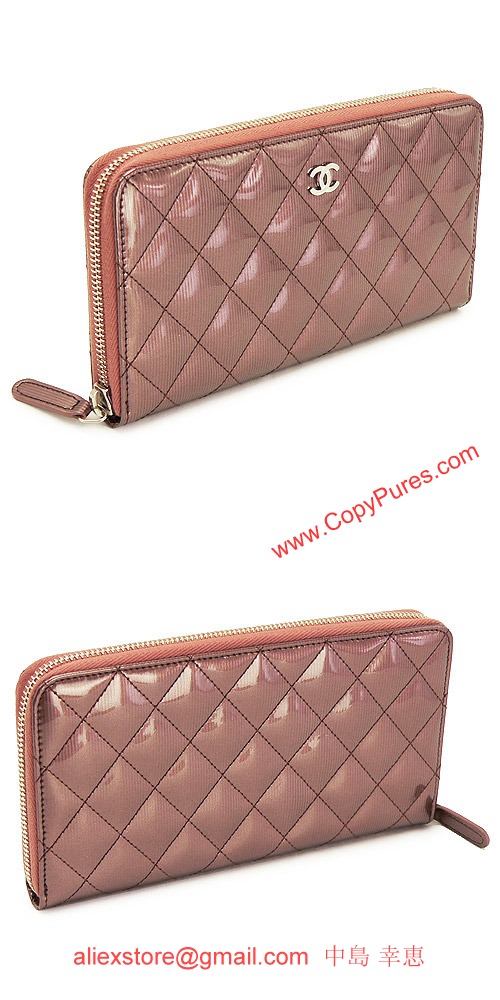 シャネル 長財布 財布 CHANEL シャネル ラウンドファスナー パテントレザー キルティング マトラッセ アンティークピンク A50097-3