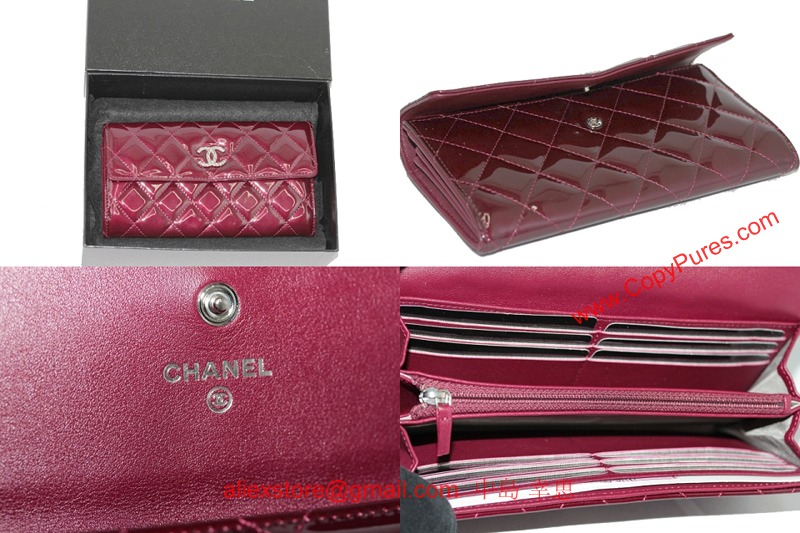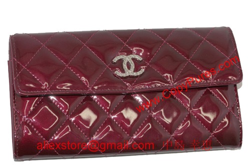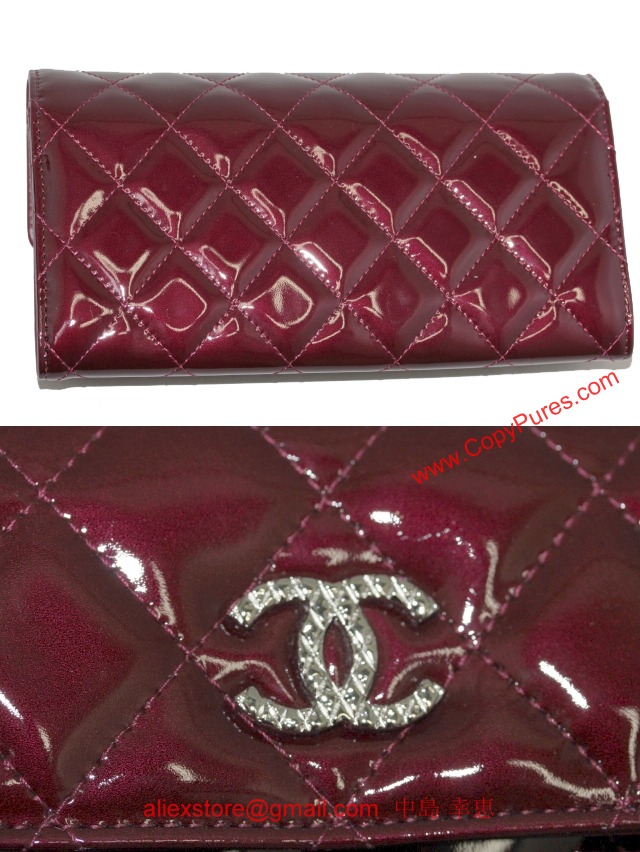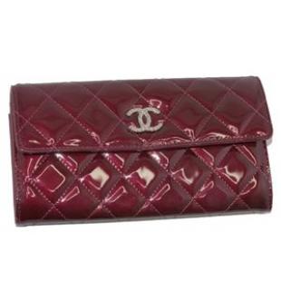 シャネル A50107 ブリリアントCCメタル パテント フラップ付きロングウオレット ボルドー 中央ファスナー長財布