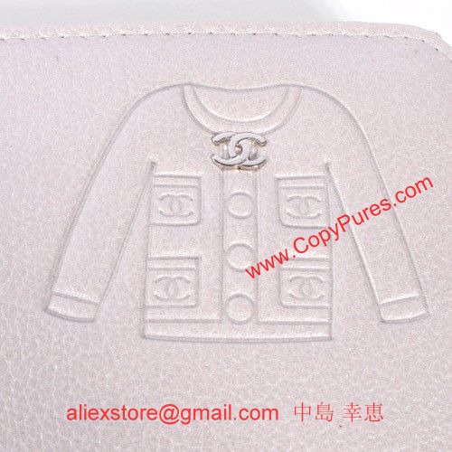 【シャネル】【長財布】【新品】2010年秋冬コレクション。シャネルを象徴するノーカラージャケットの型押しがとてもオシャレなデザイン。襟元にはシルバーに光るココマークが配されています。お札入れ×2、小銭入れ(ファスナー)×1、カード入れ×8付き。/商品番号:A50130/カラー:シルバー(ARGENT)/素材:カーフレザー/ 【縦】×【横】×【厚さ】/ 約11cm×19.5cm×2cm