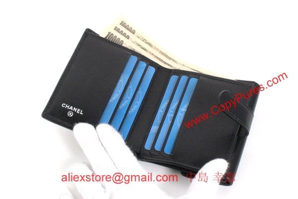 シャネル CHANEL クルーズライン ココマーク キャビアスキン 二つ折財布 ブラック シルバー A68709 【2012年秋冬新作】