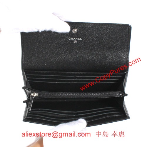 シャネル CHANEL クルーズライン ココマーク キャビアスキン 長財布 ブラック シルバー A68717 【2012年秋冬新作】