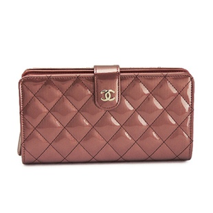 シャネル 長財布 CHANEL シャネル 財布 二つ折りフラップ キルティング/マトラッセ パテント レザー アンティークピンク A68776-1