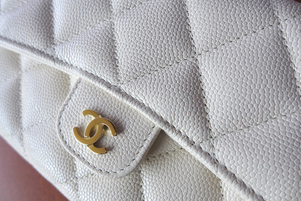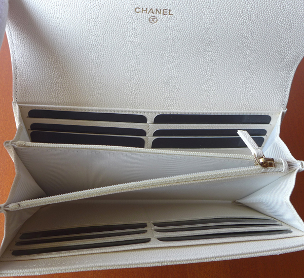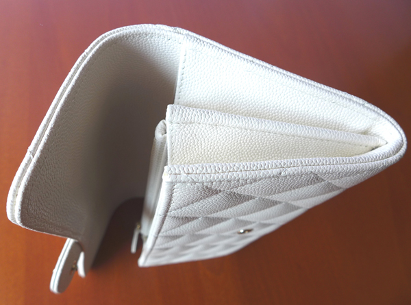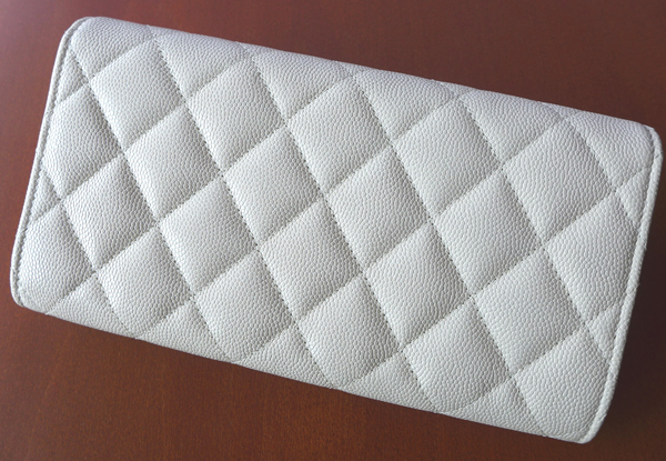 シャネルのマトラッセラインのキルティングのキャビアスキンの二折りカブセ長財布です。アイボリー オフホワイト 白 IVORY WHITE