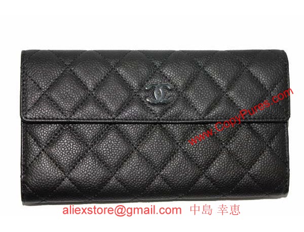 シャネルらしいキルティングデザインと丈夫で人気のキャビアスキン素材のマトラッセダブルホック長財布です。