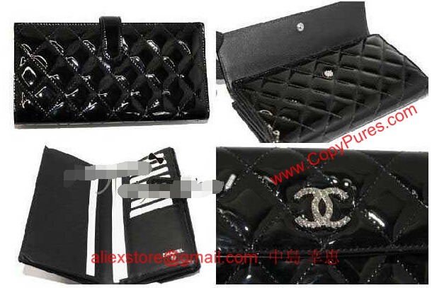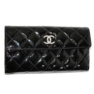 シャネル ブリリアントCC パテントカーフスキン ダブルホック長財布 黒/シルバー金具 AS6548