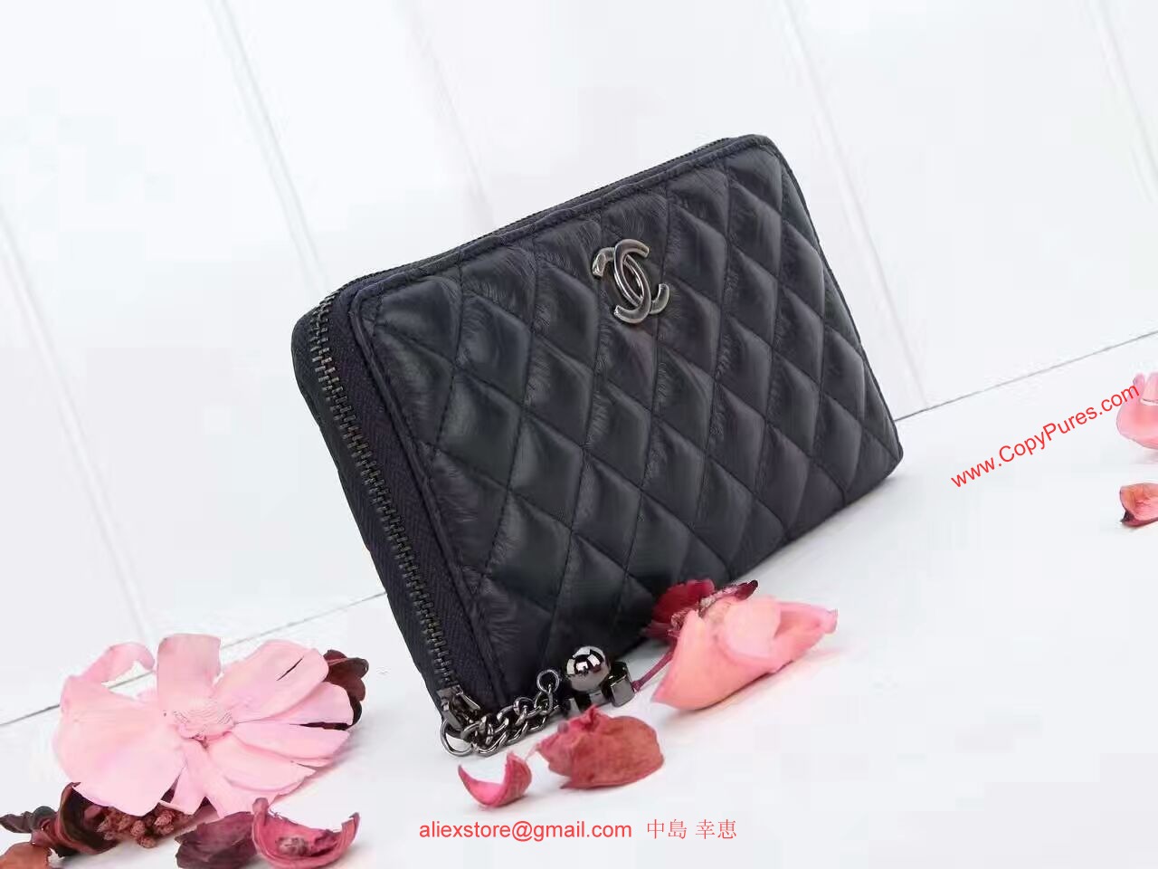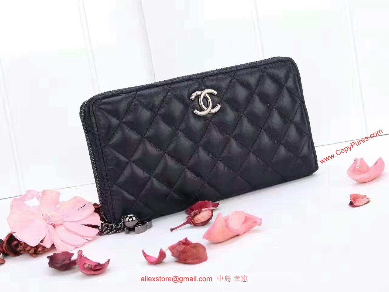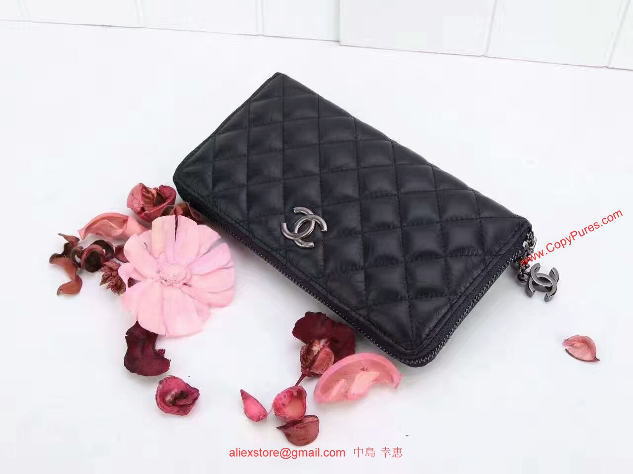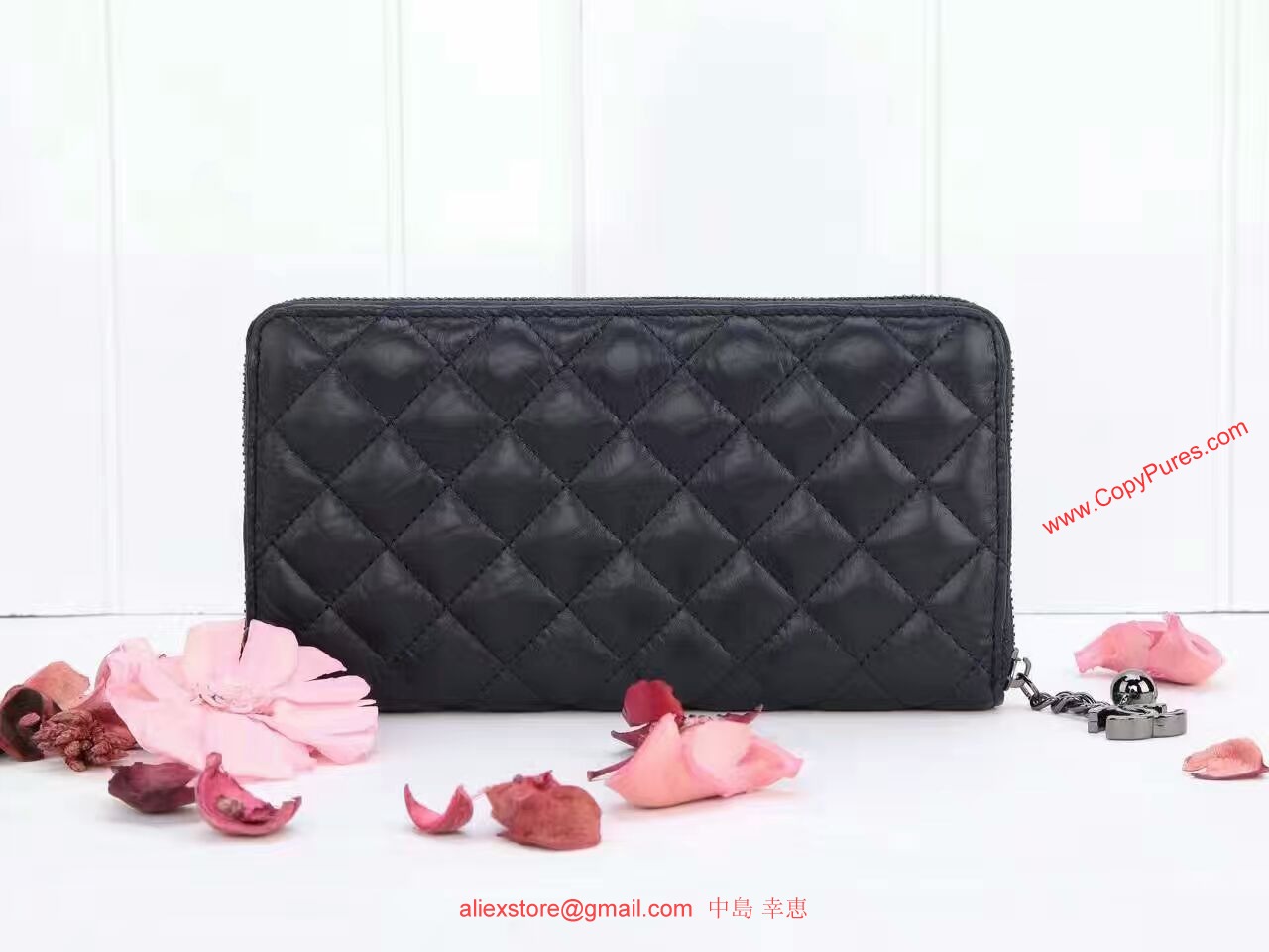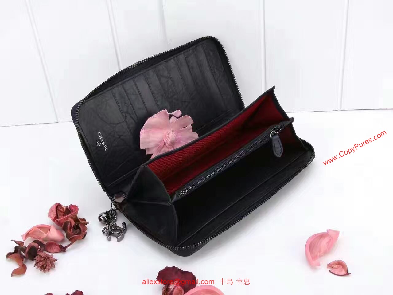 17最新作★ シャネル 財布 ファスナー長財布 ブラック CH17222022