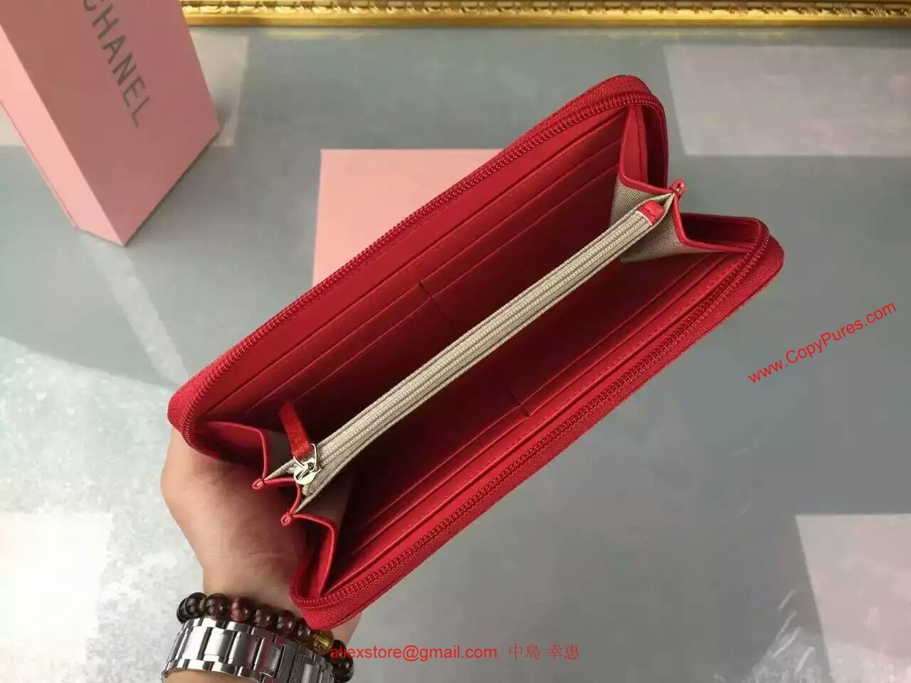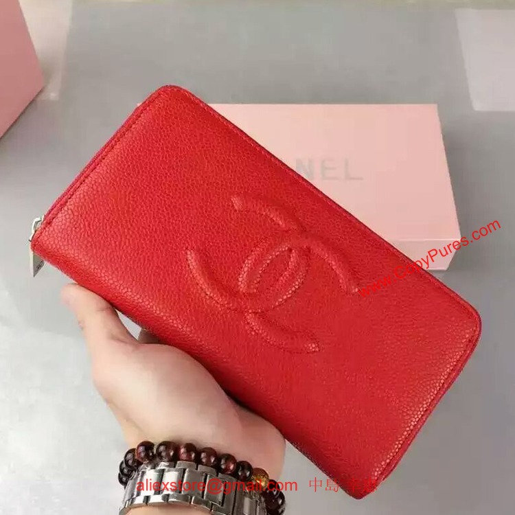 即完売必須★早い者勝ち シャネル ファスナー財布 エンボス レザー レッド