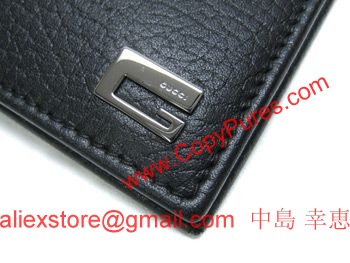 GUCCI グッチ 財布 メンズ 二つ折り 札入れ SV角G 型押しカーフ ブラック 150404 アウトレット
