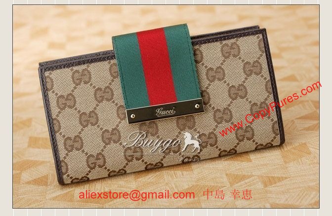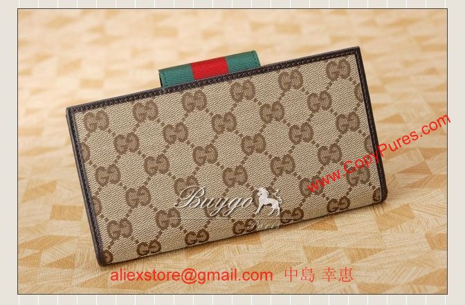 グッチ/GUCCIウェビングライン 二つ折長財布GGキャンバス×ピグスキンベージュ×ブラウン×ゴールド181668