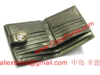 GUCCI グッチ 財布 Wホック メタリックレザー クレストボタン ブロンズグリーン 190349