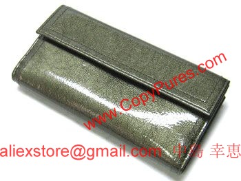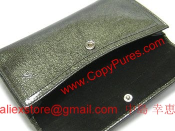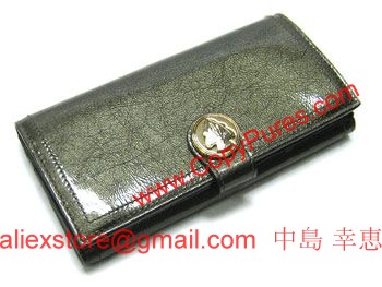 商品詳細 エナメルレザーの長財布、クレストボタンがポイント