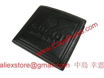 GUCCI グッチ 財布 メンズ 二つ折り 小銭付き ラベル BIGロゴ カーフ ブラック 190435