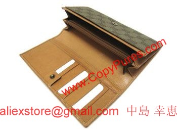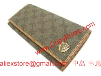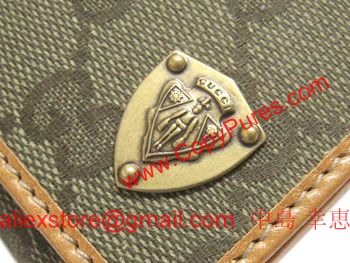 商品名 GUCCI 二つ折り長札 クレスト GGキャンバスカーキxキャメル