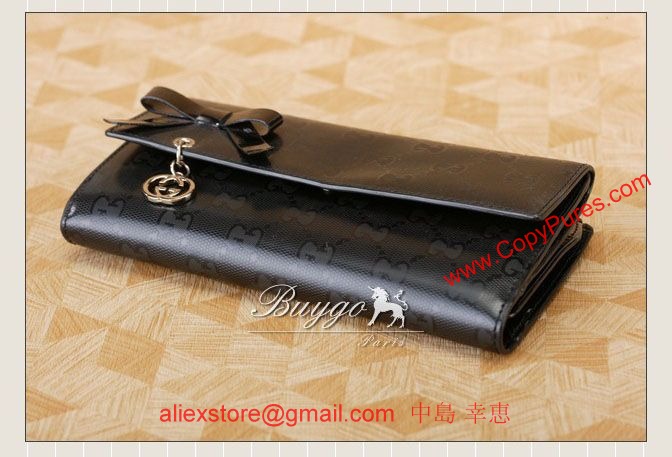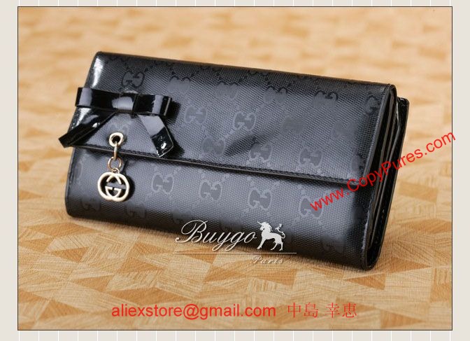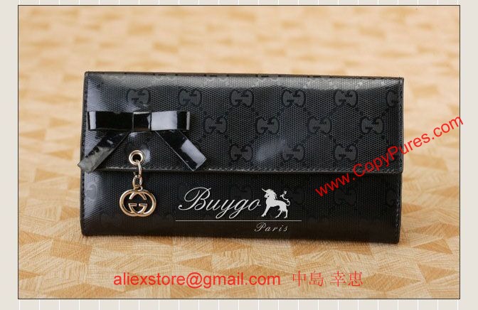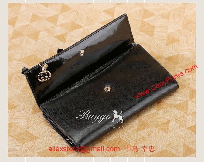 GUCCI(グッチ)インプリメ(IMPRIMEE)ライン チャーム付きコーティング長財布(ロングウォレット)【212104-FU4HR-1000】/ブラック