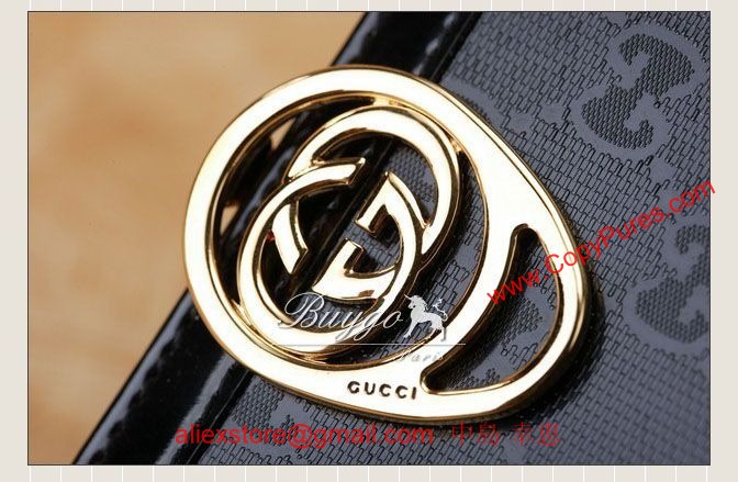 黒で統一されたGGモノグラム入りの生地と光沢感を抑えたレザーに、ゴールドのメタルパーツがエレガントさを感じさせるデザイン・