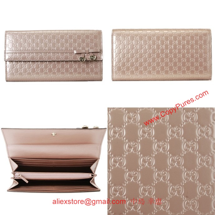 GUCCI/グッチ 2012年秋冬新作Candy二つ折り長財布(ローズピンク)。高級感溢れるGG柄の型押しレザーとGハートのついたリボンが可愛らしいおサイフです。