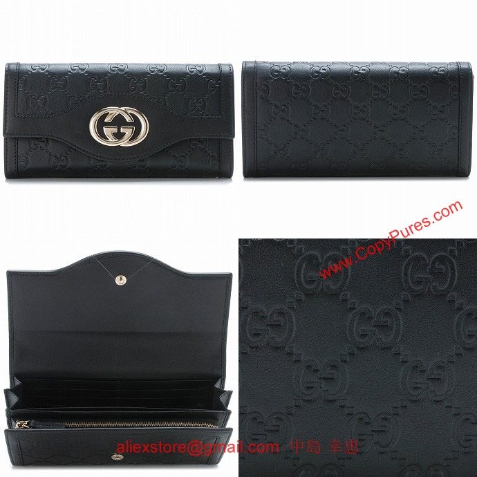 GUCCI/グッチ 2012年秋冬SUKEY2つ折り長財布(ブラック)。 正面のインターロッキングGディテールがアクセントの上品なお財布です。