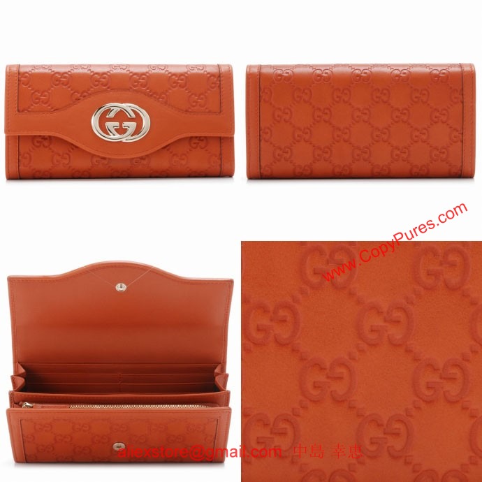 GUCCI/グッチ 2012年秋冬新作Sukey2つ折り長財布(ダークオレンジ)。 正面のインターロッキングGディテールがアクセントの上品なおサイフです。