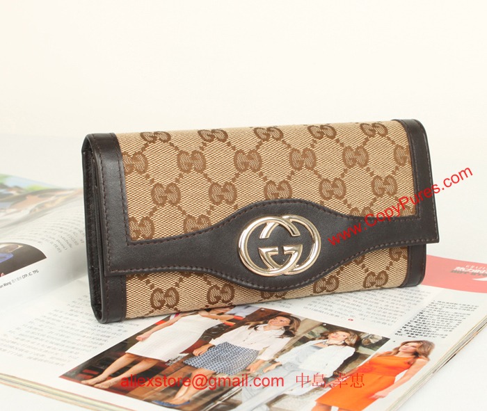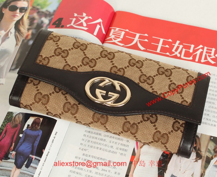 グッチ GUCCI 財布 レディース 長財布 スーキー インターロッキングG GGキャンバス アプリコット×ブラウン 282434-1
