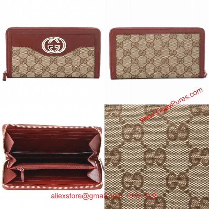 GUCCI/グッチ 2012年秋冬新作Sukeyラウンドファスナー長財布 (ベージュ/ダークレッド)。