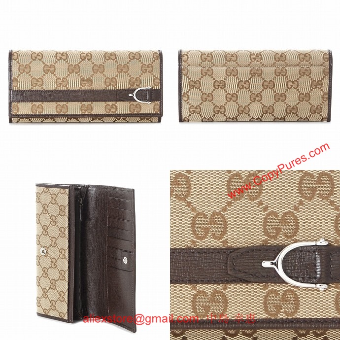 GUCCI/グッチ 2012年秋冬新作Men Stirrup MEN'S長財布(ベージュ/ブラウン)。キャンバス地がカジュアルなお財布です。